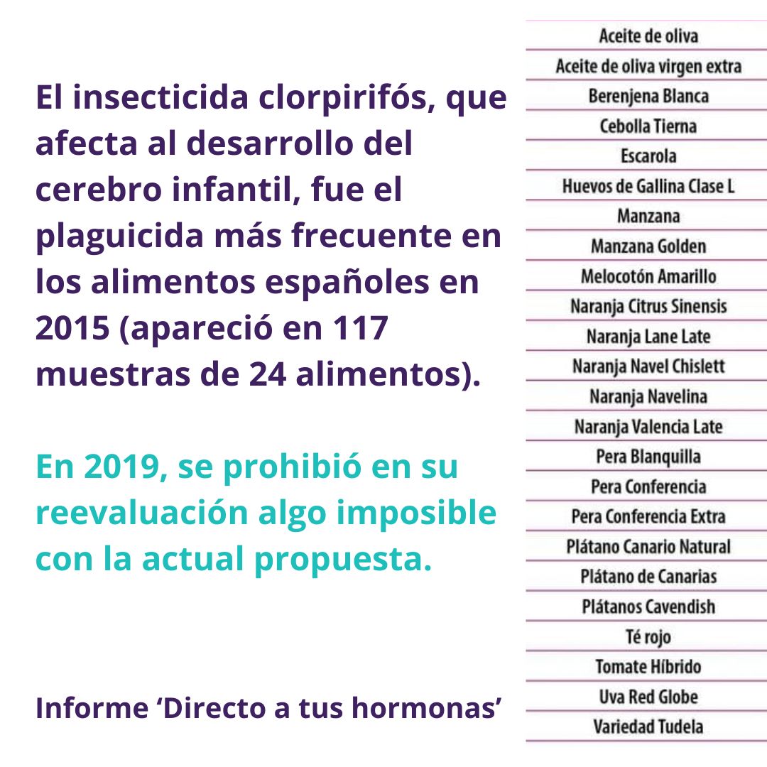 Así, insecticidas tóxicos para el desarrollo del cerebro infantil como el clorpirifós, que hasta hace pocos años era el residuo de plaguicida que se detectaba de forma más habitual en los alimentos españoles, no se habrían prohibido. Tampoco insecticidas tóxicos para las abejas, como los neonicotinoides.