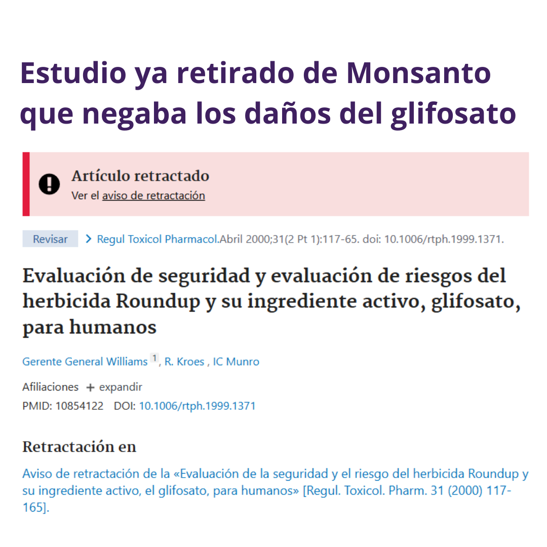 En el 2000, se publicó una evaluación de los riesgos del herbicida a base de glifosato RoundUp que concluía que ‘no hay indicios de que suponga ningún riesgo para la salud humana‘. Este estudio se ha citado como prueba de la seguridad del glifosato durante dos décadas, hasta que fue retirado en 2025, cuando se demostró que detrás estaba Monsanto. Por desgracia, la retirada del estudio no borrará veinticinco años de contaminación.